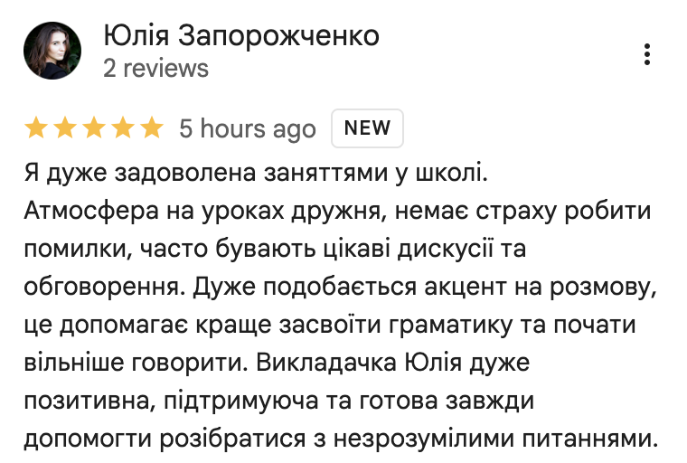 На думку Катерини, індивідуальний підхід та дружня атмосфера – найкраще поєднання для ефективного вивчення мови.